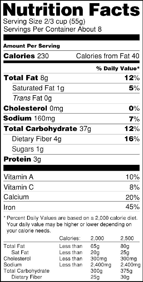 (3)新的营养标签将会以更大,更醒目的字体显示能量的数值、一个食品容器包含多少份量等信息。正如上面的标签中,您是不是一眼望去就能看见醒目的“230”?