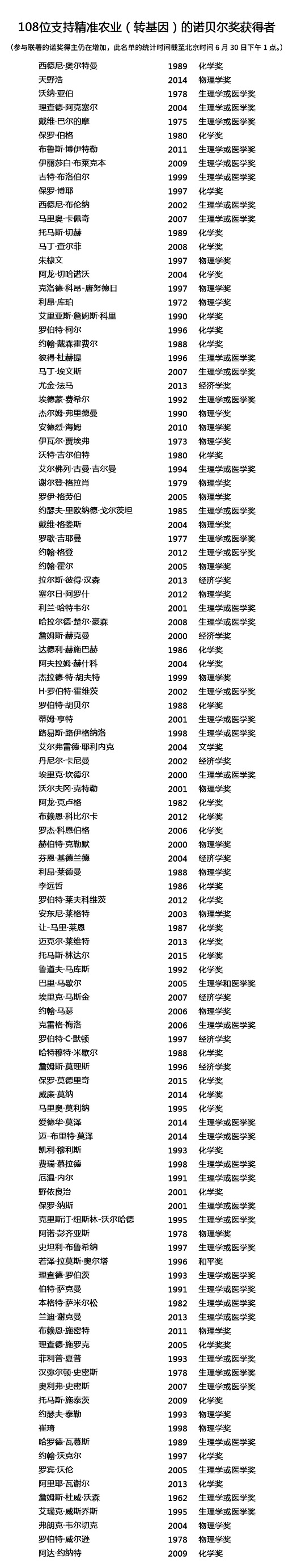 不过,2008年因绿色荧光蛋白研究而获得诺贝尔化学奖的哥伦比亚大学教授马丁·查尔菲(Martin Chalfie)表示,他认为诺奖得主在转基因议题上能很有影响力。