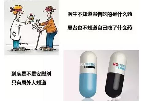 注:让患者吃胶囊,有的胶囊里面是味精,有的胶囊里面是安慰剂。单盲是指患者不知道自己吃的是味精还是安慰剂,但医生知道,双盲是指医生也不知道。