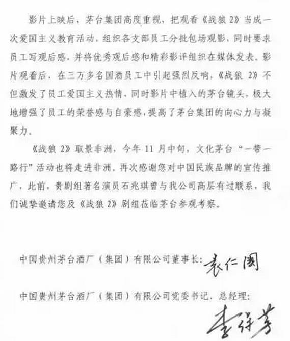 茅台的董事长和党委书记不仅发了公开的感谢信,还组织3万多员工包场看电影!