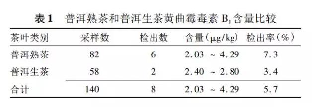 比如,2014年,广州市荔湾区疾控中心从茶叶批发市场随机购买了140份普洱茶样品,其中8份检出黄曲霉毒素 B1,检出率5.7%,换言之,没有检出黄曲霉毒素的普洱茶样品占94.3%。