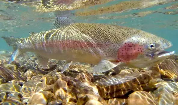 通过在饲料里加角黄素,虹鳟和养殖三文鱼的肉色可以分辨不出来。