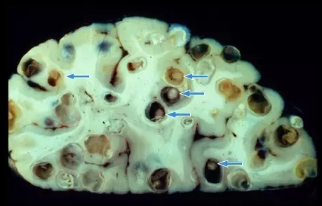 (寄生虫侵蚀大脑的标本。大脑皮层才是最关键的,里面就算是浆糊也没关系哈哈)