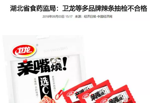喜欢吃辣条的朋友们注意了,你们的卫龙辣条被查出来不合格,添加了不让用的添加剂!