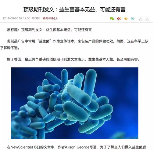 这条消息在国内迅速扩散,大量媒体报道时称,顶级期刊发文称“益生菌没啥用,还会伤害你”。