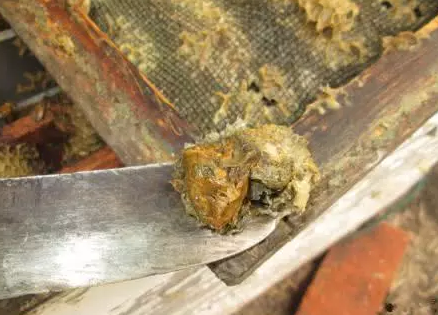 它以深褐色最常见,但也有其他颜色,比如绿蜂胶、红蜂胶、黑蜂胶等。