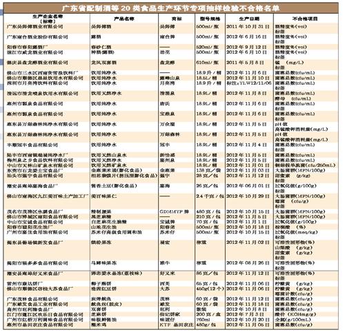 广东省质监局公布20类食品生产环节监督抽查结果。去年12月至今年1月,针对抽查的50批次饮用水,其中12批次内在质量不合格,不合格项目是菌落总数、酵母、pH值、高锰酸钾消耗量、铜绿假单胞菌。此外,个别产品标签标识不合格。