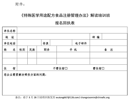 关于举办《特殊医学用途配方食品注册管理办法》 培训班的预通知