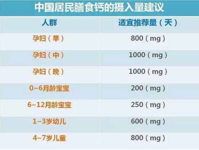 这张表是我国居民膳食指南推荐每日钙摄入量。