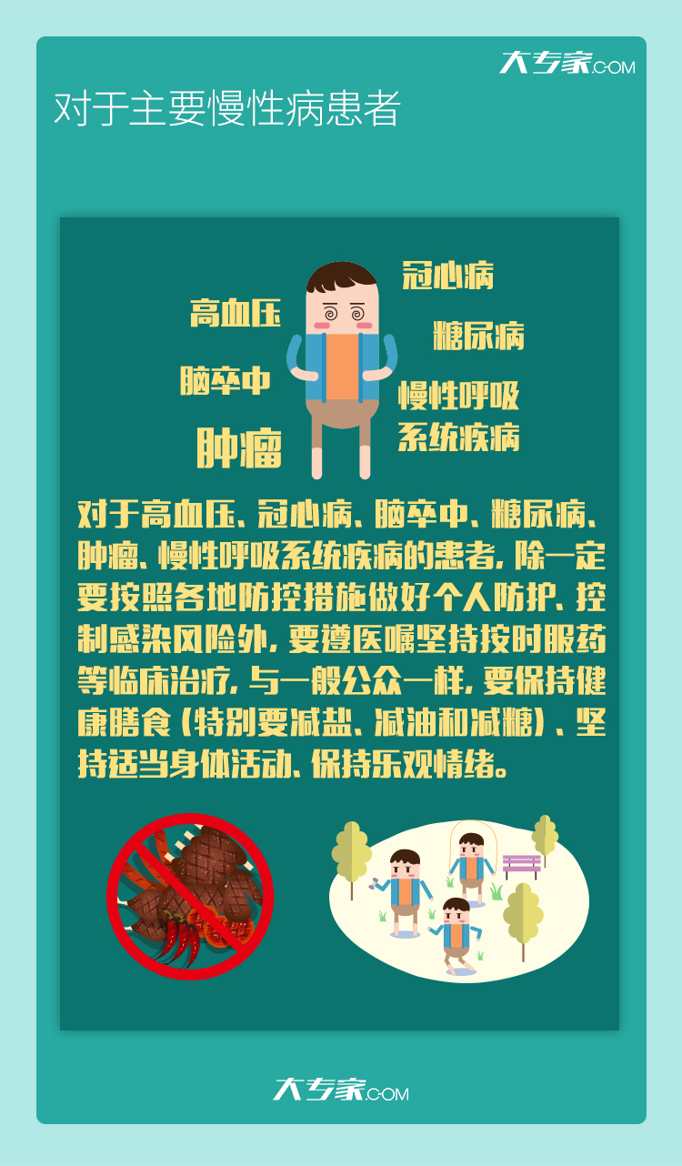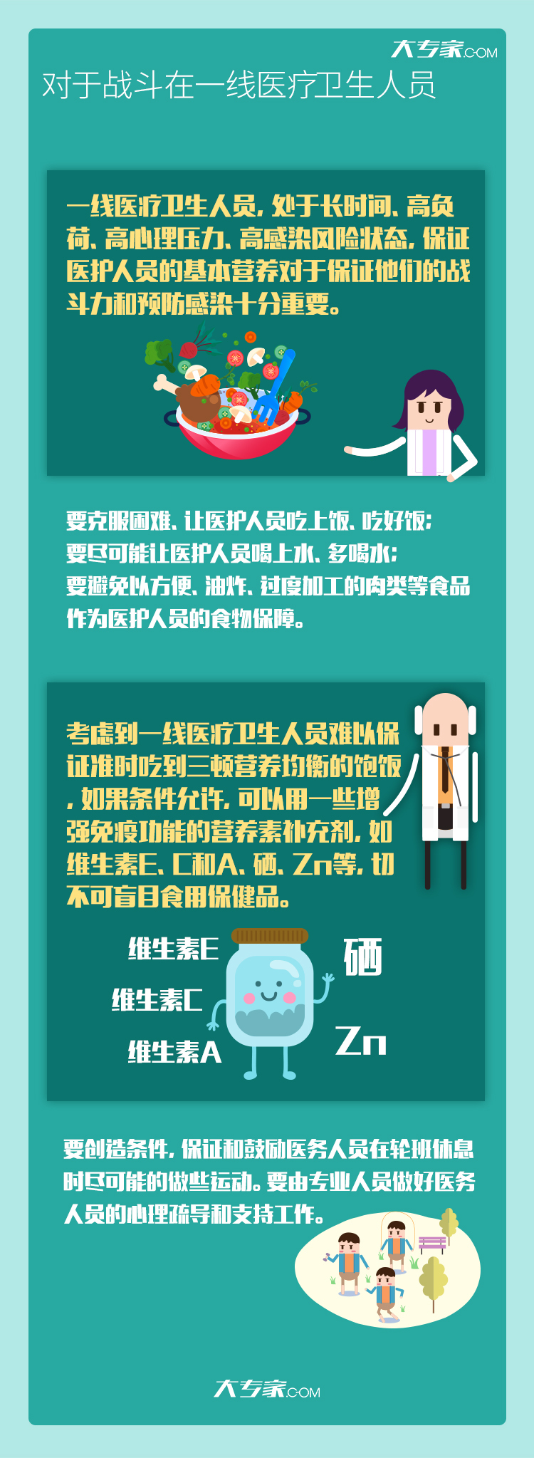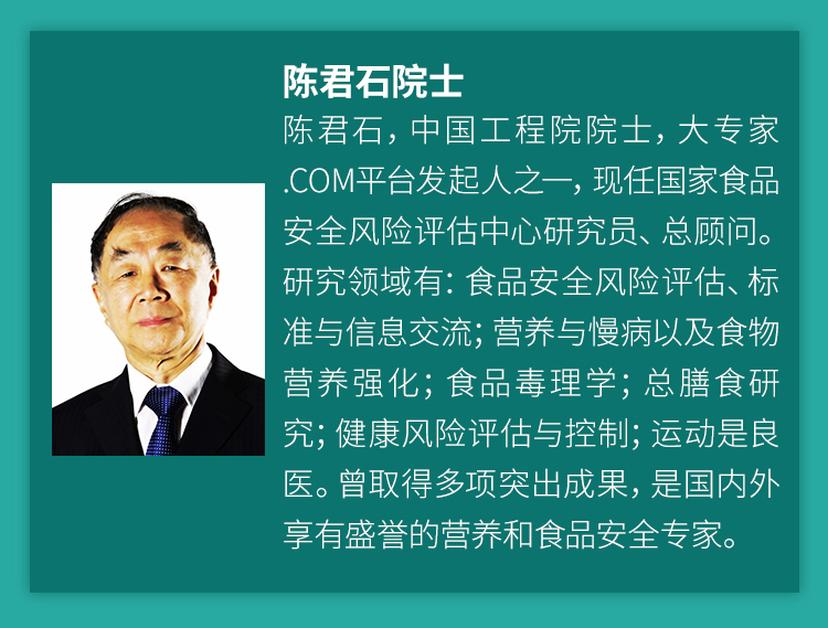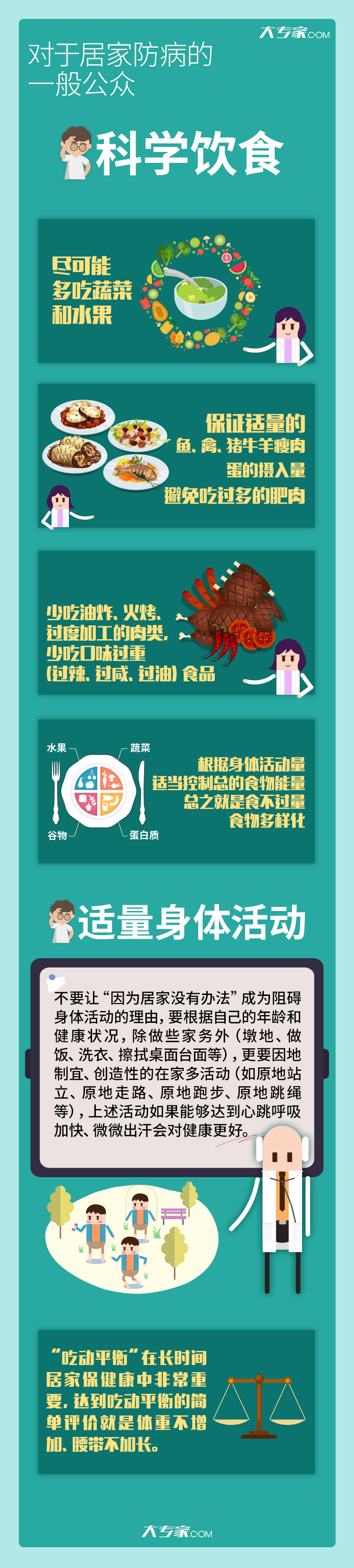 如何保证健康的身体投入这次战斗,是能否取得胜利的重要因素。大专家.COM发起人之一、中国工程院院士,国家食品安全风险评估中心研究员、总顾问陈君石院士表示:除了早期发现、有效隔离外,还要规律生活,科学饮食和适当活动。