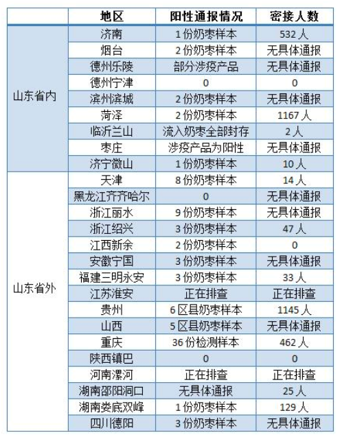 一通瞎忙活之后,情况逐渐明朗。和“天津雪糕”不同,这次产品流入市场的情况比较复杂。据不完全统计,“涉疫奶枣”已经至少流入14省,11省已检出阳性。分析各地通报的情况,这次的事件呈现几个特点。