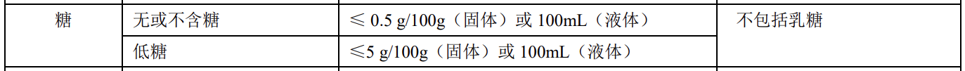 按照我国营养标签标准规定,如果食品中糖含量≤5g/100g(或100ml),属于“低糖”食品,糖含量≤0.5g/100g(或100ml),就属于“无糖”食品。