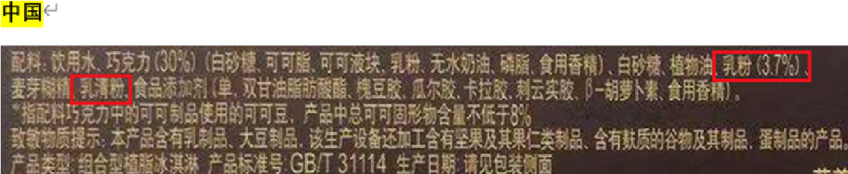 比如英国的同时用了复原脱脂奶、全脂奶粉、乳清固体;加拿大的同时用了浓缩脱脂奶、乳清粉、全脂奶粉、浓缩乳清蛋白;而中国只用了奶粉和乳清粉。