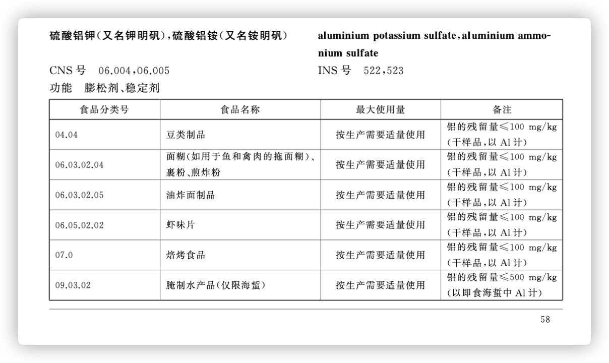 上图可见,《食品安全国家标准 食品添加剂使用标准》(GB 2760-2014),未批准在婴幼儿辅食中添加硫酸铝钾(明矾),连普通面条都未批准。欧盟标准中也不允许在婴幼儿食品中添加硫酸铝钾。所以市场上的正规婴幼儿辅食,是不会额外添加明矾的。