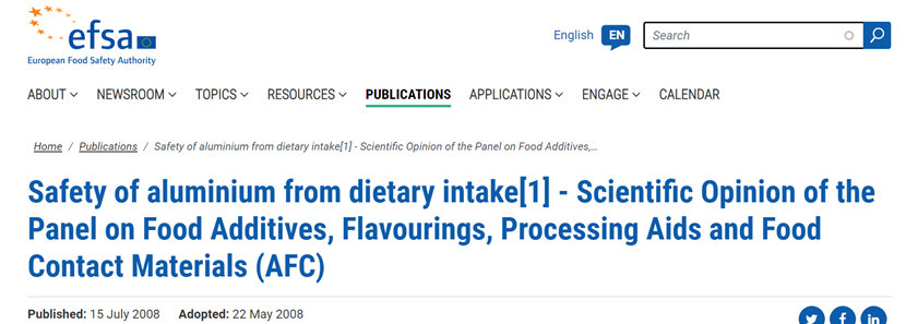 1. 欧盟食品安全局(EFSA)不是风险管理部门,不制定具体的限量标准,只给出风险评估的科学意见和建议。媒体提到的“建议”就是下图,里面并没有任何关于面制品铝限量的说法。