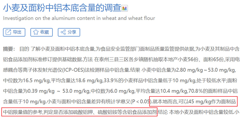 欧洲食品安全局早在 2008 年就采纳了一项关于通过饮食摄入铝的安全性问题的建议,规定面制品中铝含量不得超过 10mg/kg。在此后的多年里,常有来自中国的面制品因铝含量超过该限值而被欧盟禁止入口。