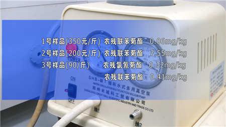 3号样品(90/斤) 检出农残氯氰菊酯 0.32mg/kg、农残联苯菊酯 0.41mg/kg