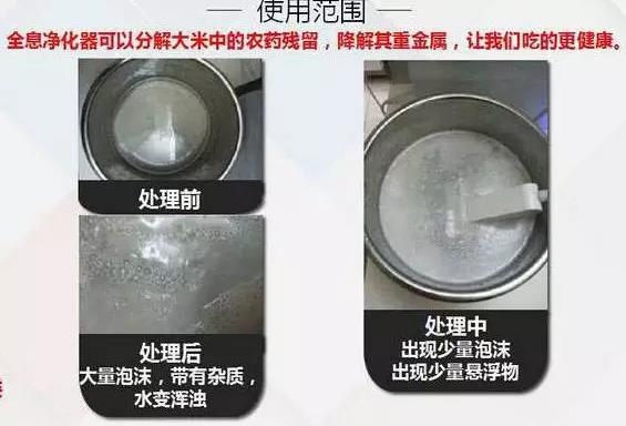 (下图是商家的宣传,其实是超声乳化效应,跟农残没关系,降解重金属更是笑话了)