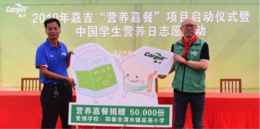 2019年5月20日是第30个“中国学生营养日”,嘉吉走进广东省阳江市高尧小学,启动了今年的“营养嘉餐”活动。嘉吉宣布捐赠24万元人民币,为学校近200名贫困学生送上共计50,000余份营养餐包,以帮助该校的贫困学生加强膳食、改善营养,助力他们茁壮成长。嘉吉中国区副总裁马征表示:“以安全、负责和可持续的方式滋养世界,是嘉吉一贯的使命。作为全球领先的粮食及食品企业,嘉吉在以可持续方式发展业务的同时,一直致力于帮助农民发展,改善儿童的营养等等议题。通过‘营养嘉餐’一系列的公益活动,嘉吉不仅希望以自身的力量帮助贫困地区儿童增强营养,也希望整个社会都来关注这一问题。”