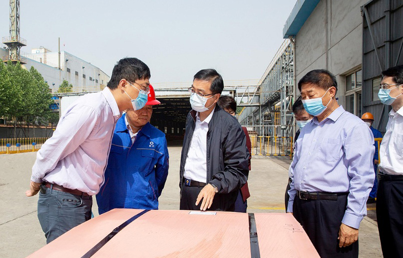 5月17 日, 山东省副省长刘强就金融支持外贸企业发展工作情况, 来到新凤祥集团调研指导。调研期间,刘强走进新凤祥旗下凤祥食品和祥光有色金属两大实体产业一线,详细了解企业生产经营情况,认真倾听企业在产业发展、银行信贷、金融辅导等方面的需求,并召开座谈会现场研究相应措施。