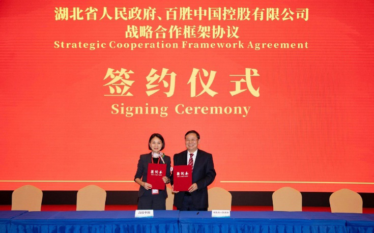 2020 年 11 月 6 日,湖北省人民政府与百胜中国控股有限公司,在上海第三届进博会期间签署战略合作框架协议。湖北省人民政府副秘书长刘仲初与百胜中国首席执行官屈翠容代表双方签约。