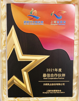 光明乳业荣获“2021 年度上海市志愿者协会最佳合作伙伴”称号
