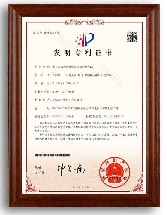 近日,无限极(中国)有限公司申请的发明专利——《基于谱效关系的党参质量检测方法》正式通过国家知识产权局审查,并被授予发明专利证书,无限极再添一项国家发明专利。此前,中草药行业内针对党参健脾作用的功效成分尚未有清楚全面的研究。而无限极提前布局,经过 3 年的深入研究,明确了党参健脾功效物质基础,创新性地构建了基于谱效关系的党参质量检测方法,并成功获得国家发明专利,为行业提供了一种与药效明显关联并具体量化的党参质量评估方法,让党参的质量控制更加科学完善。
