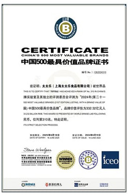 太太乐荣获“2024 年中国 500 最具价值品牌”称号