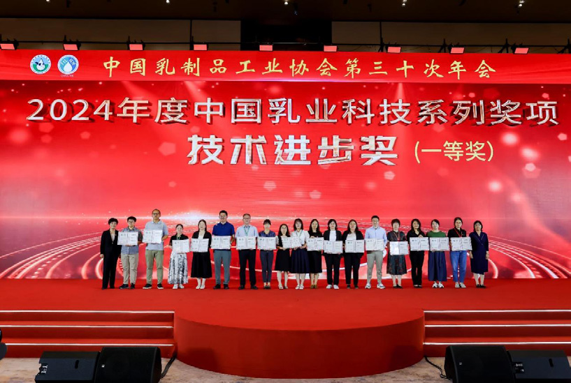 近日,以“打造乳业新质生产力,推动行业高质量 发展”为主题,中国乳制品工业协会第三十次年会暨 2024 年中国 ( 国际 ) 乳业技术博览会在长沙开幕。会上, 中国飞鹤荣获“2024 年度中国乳制品技术进步一等奖”, 中国飞鹤研发总监潘健存获得“乳业优秀青年科技工作 者”殊荣。