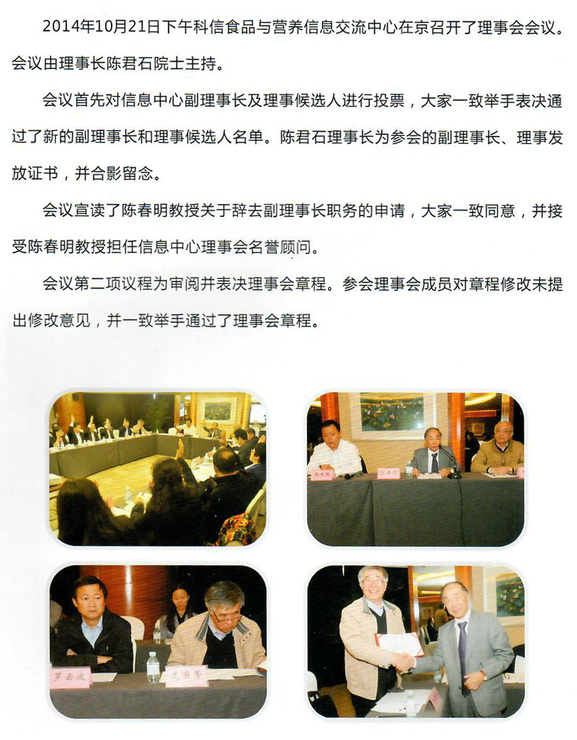 科信食品与营养信息交流中心召开理事会