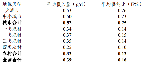 调查结果显示,中国人平均每天吃的反式脂肪是0.39克,相当于供能比为0.16%,城里人比农村人吃的多一些,平均供能比是0.25%,在北京、广州这种高端大气上档次的城市,居民反式脂肪的供能比也只有0.34%,远低于WHO的建议值(小于1%)