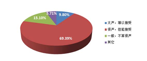 2、当被问及“此次修订的《食品安全法》被称为史上最严,您怎么看”时,510名经营者选择“很严,但能接受”,占比69.39%;111名经营者选择“一般,不算很严”,占比15.10%;72名经营者选择“太严,难以接受”,占比9.80%;42名经营者选择“其它”,占比5.71%。数据显示,近七成经营者认为新《食品安全法》很严,但能接受;不到一成经营者认为严得难以接受。数据说明,多数经营者愿意接受严管,只有少数经营者不愿接受严管。那些难以接受严管的经营者,可能恰恰就是需要严管的主要对象。