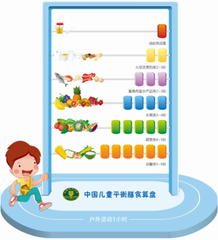 新版的膳食指南中还制定了的儿童平衡膳食指导,形象则是一个「算盘」——中国儿童平衡膳食算盘。这是今年专为健康儿童设计的算盘,也是一大亮点,用于帮助我们的儿童熟悉各种食物的每日推荐量。