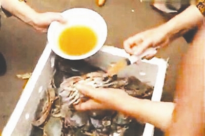 上述负责人介绍,据他们了解,用针筒向螃蟹注入橙色液体极有可能是南方的一种烹饪方式,在上蒸笼前向螃蟹注入料酒和佐料,会更入味。