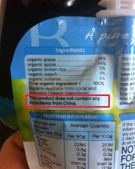 澳大利亚婴幼儿食品包装印刷“不含中国原料”