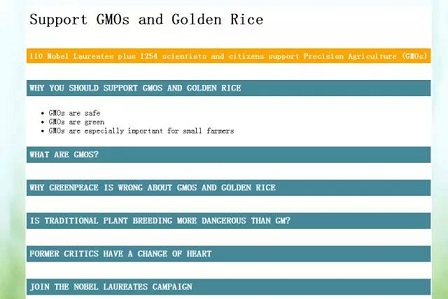 “我们强烈要求绿色和平及其拥护者重新审视全球农民及消费者使用经生物技术改良的作物及食物的经验,承认可靠的科学机构及监...
