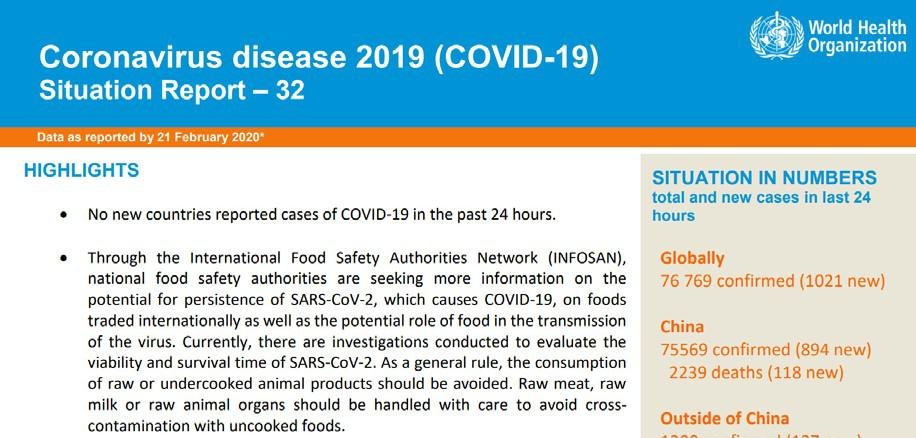 2 月 21 日,世界卫生组织发布一份文件,对 新冠病毒通过食品传播的可能性给出了官方意见及 针对性的建议。这里将核心观...