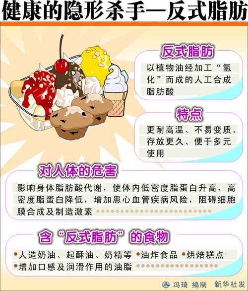 2013-03-19 09:03:26含反式脂肪酸的食物(图来自:新华社) 因为在两年前,反式脂肪酸一度被媒体报道为餐桌上的定时炸弹...