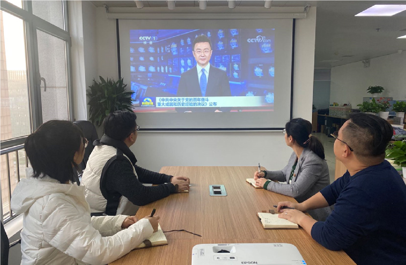 首先,与会成员认真观看了《新闻联播》中关于发布《中共中央关于党的百年奋斗重大成就和历史经验的决议》的报道。紧接着,吴桐书记结合习近平总书记《关于<中共中央关于党的百年奋斗重大成就和历史经验的决议>的说明》带领支部全体党员学习《中共中央关于党的百年奋斗重大成就和历史经验的决议》内容,并引导党员同志就充分认识《决议》的必要性,如何准确把握党的百年奋斗在民族复兴进程中的科学定位和马克思主义中国化的新飞跃,深刻把握百年奋斗历史意义五个方面的内在逻辑,深刻领会并不断坚持十条历史经验等进行了交流讨论。
