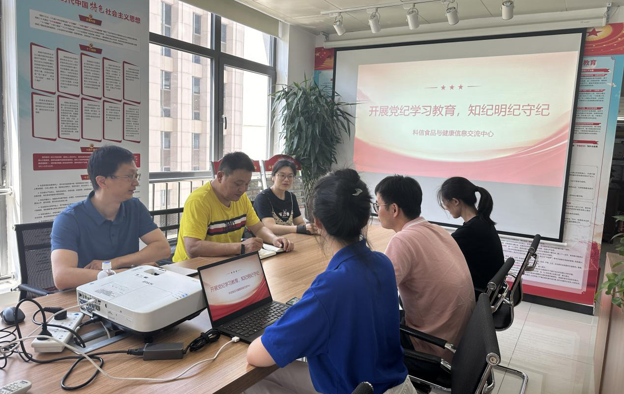 为深入开展党纪学习教育,强化警示震慑作用,推动党纪学习教育走深走实, 6 月 3 日,科 信食品与健康信息交流中心党支部组织全体党员及中心职工召开了党纪学习系列教育活动。活动 由党支部书记包大跃主持。