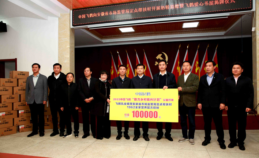 11月22日,中国飞鹤奶粉捐赠暨爱心书屋揭牌仪式在安徽省潜山市官庄村举行。安徽省市场监管局党组成员、副局长刘存俊,安徽省...