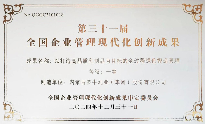 近日,“2025 年全国企业管理创新大会”在广东珠海召开,会议发布和推广了第三十一届全国企业管理现代化创新成果。蒙牛集团...