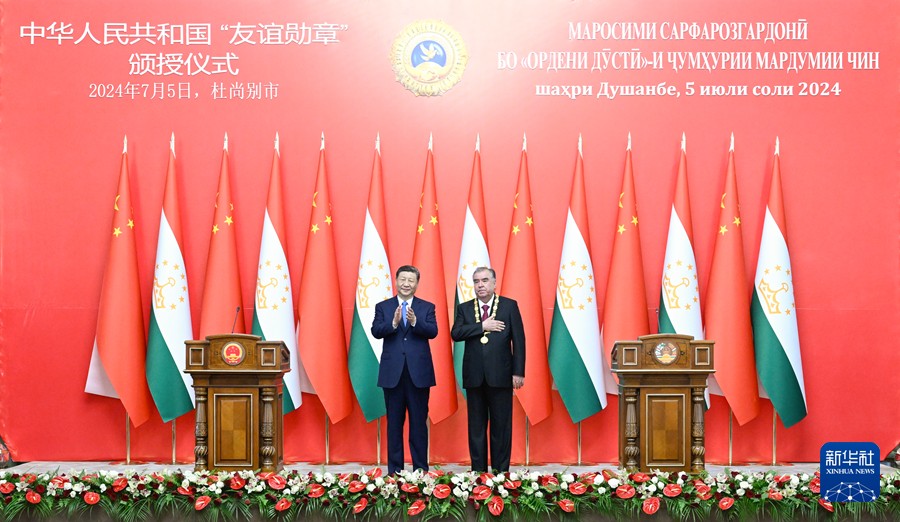 习近平向塔吉克斯坦总统拉赫蒙颁授“友谊勋章”
