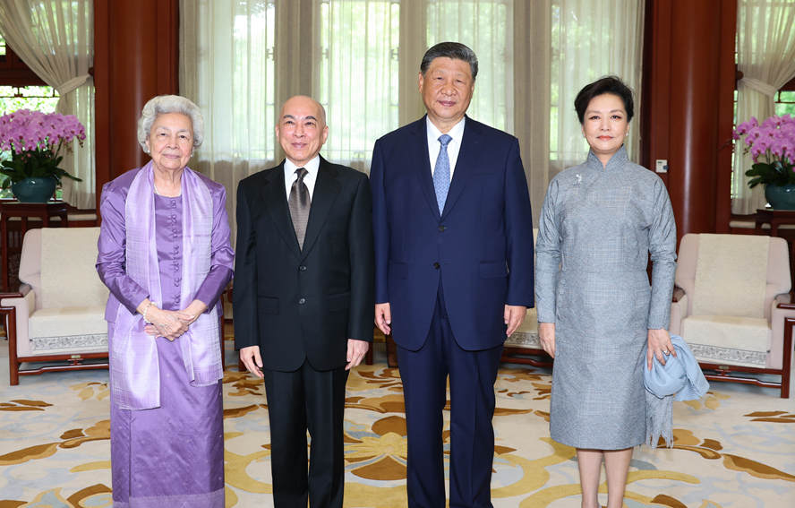 习近平夫妇会见柬埔寨国王西哈莫尼和太后莫尼列
