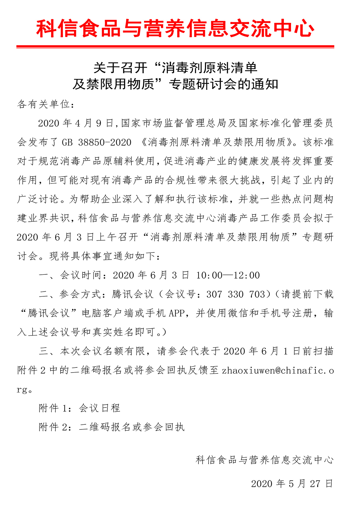 关于召开“消毒剂原料清单及禁限用物质”专题研讨会的通知