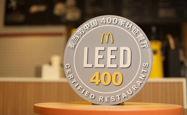 2020 年 9 月 16 日,麦当劳成都绕城大道南一段餐厅获颁 LEED(能源与环境设计先锋)认证, 成为麦当劳中国第 400 家获得 LEED