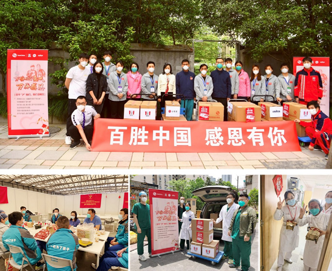 作为中国最大的餐饮企业,百胜中国致力于发挥自己的规模优势和专长支持社区。在五一劳动节当日,百胜中国携旗下品牌为上海四个方舱医院和定点医院的医务人员送去了包含炸鸡、比萨、三明治和咖啡等数百份热食和饮品。与此同时,公司调动全国各地肯德基和必胜客餐厅资源,为援沪医务人员准备了 3 万多份“感恩礼包”,特别挑选了肯德基“自在厨房”和必胜客“必胜优选”的牛排、炒饭、牛肉饼等新零售产品,供他们凯旋返家之后与家人一同分享。